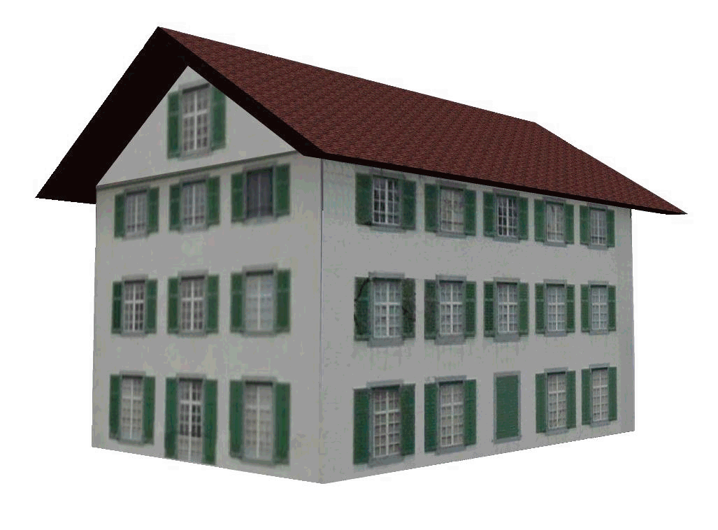 Balkonen, Terrassen, oder Arkaden, Dach mit Lukarnen mit Texturen und Farben |